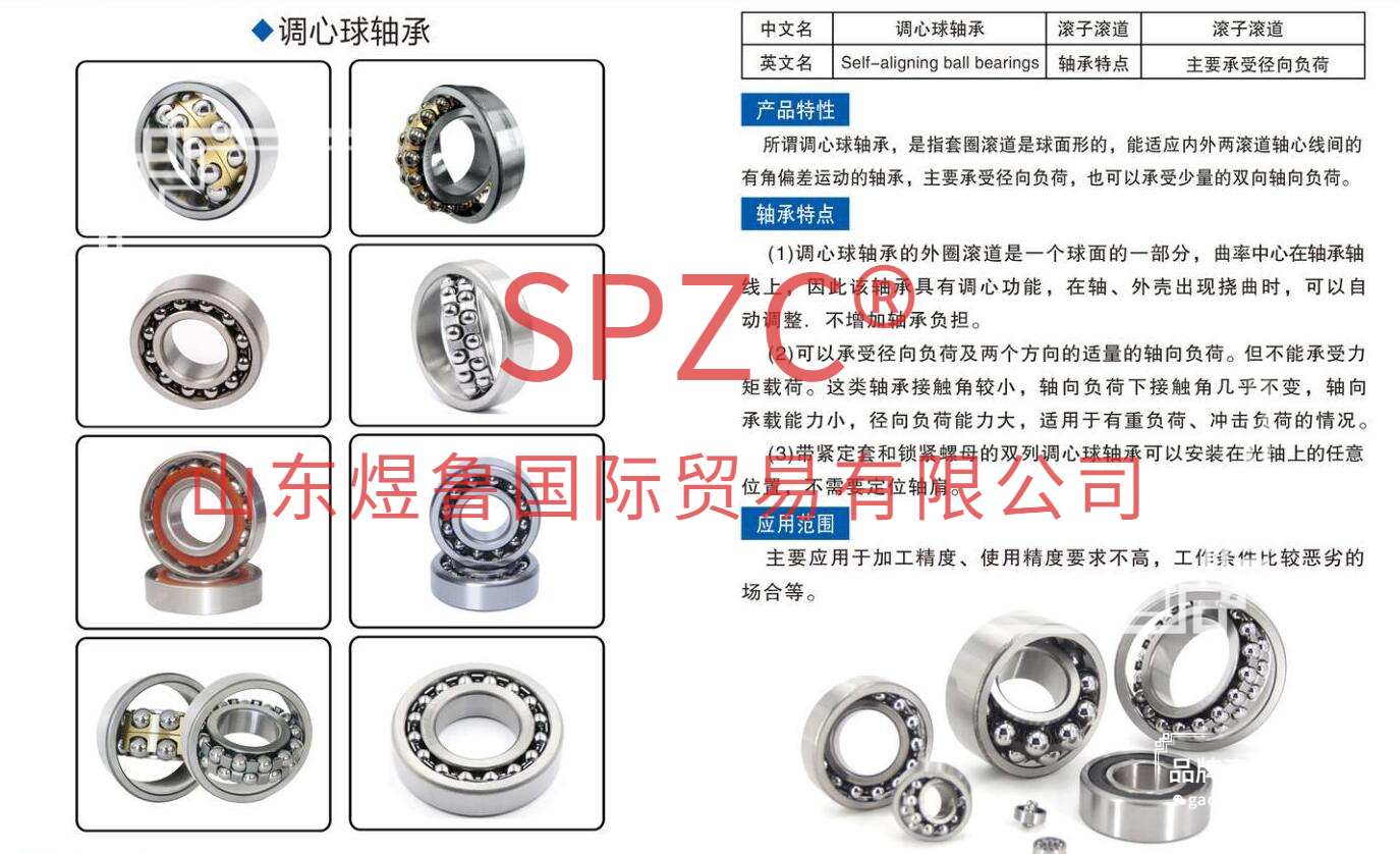 调心球轴承有圆柱孔和圆锥孔两种结构,保持架的材质有钢板、合成树脂等。其特点是外圈滚道呈球面形,具有自动调心性,可以补偿不同心度和轴挠度造调心球轴承调心球轴承